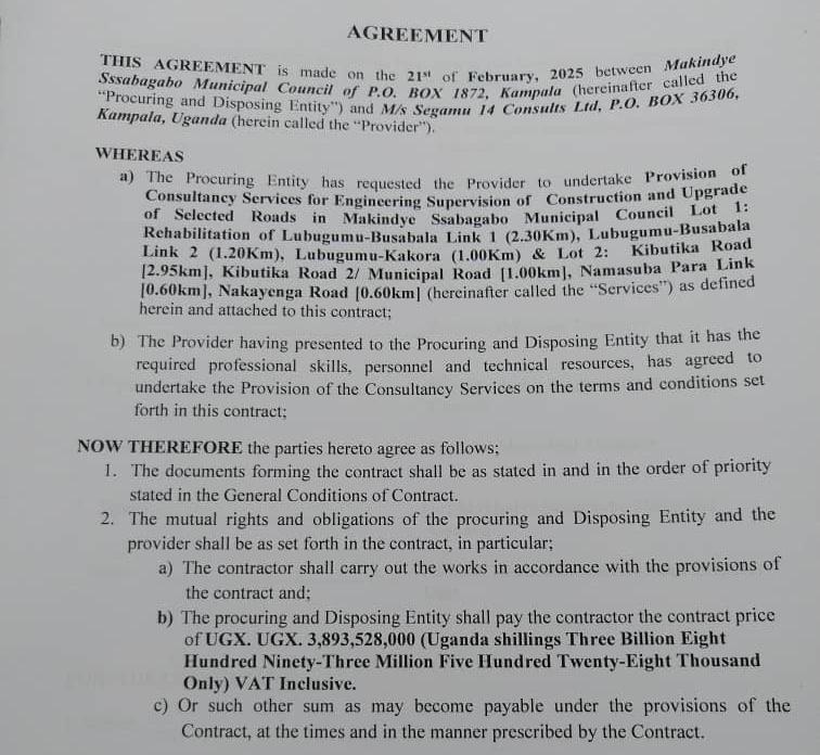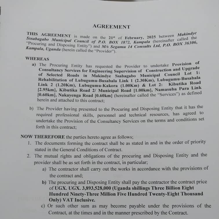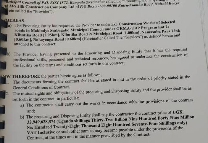 Today, leaders & stakeholders of@MSsabagaboMC led by Hon.@kyofakabuye2 witnessed the signing of 4 contracts for works under GKMA-UDP between Makindye Ssabagabo MC & MS/China First Highway Engineering Company and also between Makindye Ssabagabo MC & JILK Construction Company Ltd@WorldBank